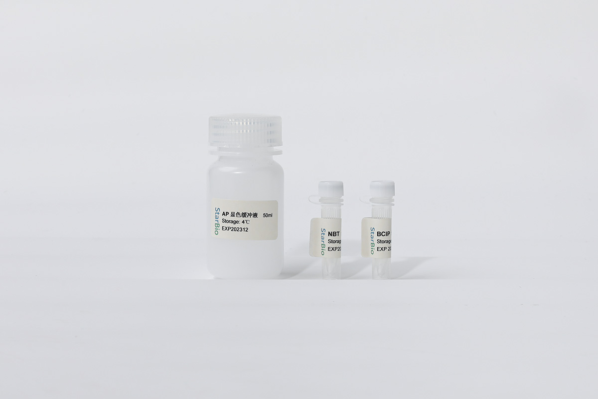 BCIP/NBT是堿性磷酸酶的常用底物,在堿性磷酸酶的催化下,BCIP會被水解產(chǎn)生強反應(yīng)性的產(chǎn)物,該產(chǎn)物和NBT發(fā)生反應(yīng),形成不溶性的深藍色和藍紫色化合物。星啟百代BCIP/NBT顯色試劑盒經(jīng)反復(fù)優(yōu)化,具有超高的堿性磷酸酶反應(yīng)靈敏度,可廣泛應(yīng)用于DNA印跡雜交、RNA印跡雜交、蛋白印跡檢測、原位雜交以及免疫組織化學(xué)顯色等。