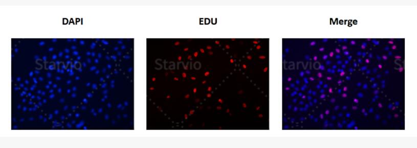 圖1. 使用Starvio EdU細胞增殖檢測試劑盒檢測Hela細胞增殖情況。